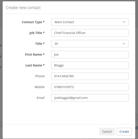 This will then direct the user to the pop-up shown below where the details of the contact can be entered.