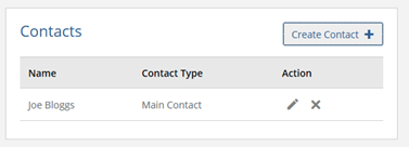 A contact for the client can be added by the user at this stage. This could be an individual within the client that the user has had communication with or wishes to in the future. A contact is added by clicking the “Create Contact” button.