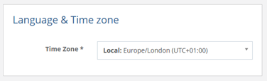 The user can also enter the time zone for the client by using the dropdown menu shown below. This is the time zone of the country that the client is based in. This allows the system to support clients which work in different time zones.