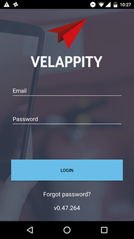 To download the application the user must go to the Apple App Store on an IOS device or the Google Play Store on an Android device and then search for “Velappity”. The user should then install the application and open it.