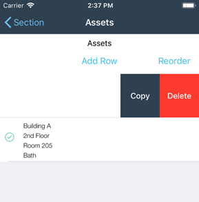 On iOS users can add a new section to the grid by pressing the “add row” button in the middle of the top of the screen. Swiping left on a section will give the user the option to copy the section or delete the section.