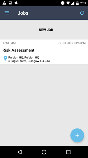 When a job has been synced, the user will see a page on their device showing the list of jobs downloaded to their device (in this case only one):