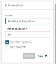 There are also two checkboxes which each respectively determine whether the form can be raised (i.e. created) on a mobile device and whether auto complete is enabled. There are also two checkboxes which each respectively determine whether the form can be raised (i.e. created) on a mobile device and whether auto complete is enabled.