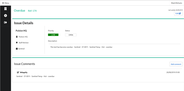 This page contains all of the information that is currently available for this issue, the user is able to edit this data by pressing on the “Edit” button at the top right of the “Issue Details” subsection.