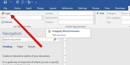The Velappity Word Plug-In must be downloaded and installed into Microsoft Word. Note the plug-in only works with the Windows version of Microsoft Word. Installation instructions are in Appendix 1 below.