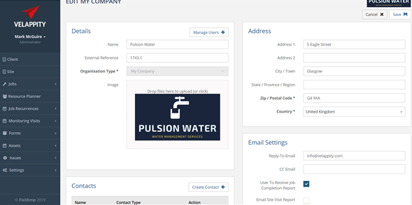 If the user is happy with all the information that they have provided, the user should click on the “Save” button at the top right of the “My Company” page. Please note that if the user wants to set up auto-emails for job completion reports and site visit reports the user should stay in the edit state on the page.