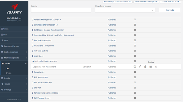 To upload a template, the user must have first created a template. Once this has been created, the user must go to the “Forms List” page and select the desired form that corresponds to the user’s template.