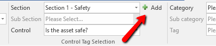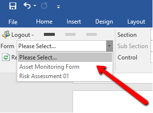 Now that a Form has been selected, you can select what content you want to be added to the document. First select the Section (& Sub Section if used) from the Section & Sub Section drop-downs. Then select the Control to add from the bottom Control drop-down.