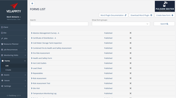 To upload a template, the user must have first created a template. Once this has been created, the user must go to the “Forms List” page. To do this, the user must click on the “Forms” heading, followed by the “List” subheading.