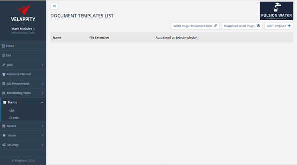 Once clicked on, the user will be directed to a “Document Templates List” page: