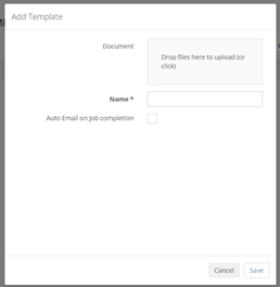 The user can then drag and drop files, in this case the user’s template, into the “Document” field. The user should then enter the name for the document into the “Name” field i.e. Legionella Risk Assessment. The user can also choose whether to email this document to the client after completion of the job.